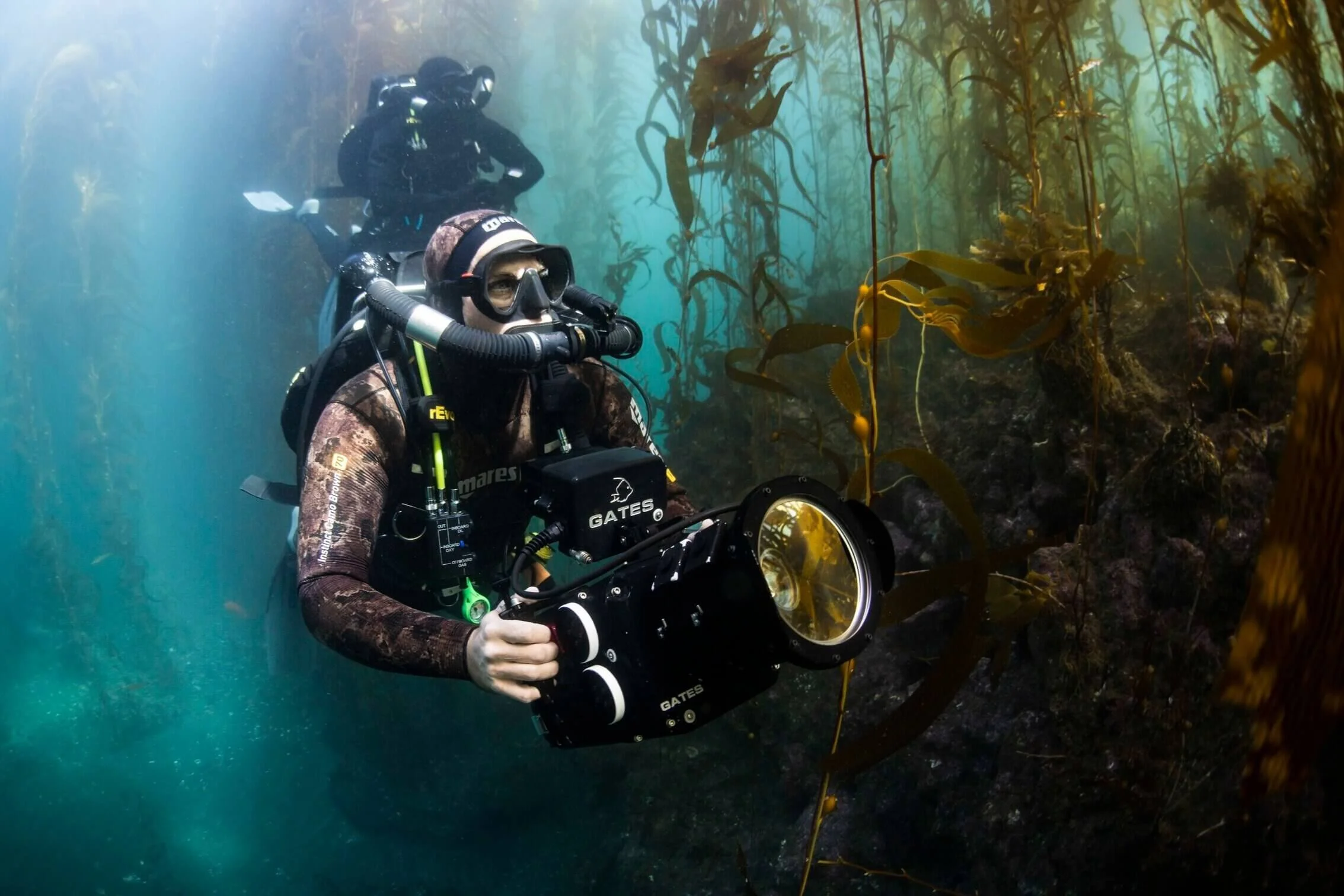 I personally own a variety of my own kit but there’s not a one size fits all answer. When approaching a shoot, I think about what we’re trying to achieve, and build the kit list off that to suit the story we’re trying to tell. But in general, we’re using some type of RED camera in a Gates or Nauticam underwater system. At the end of the day, the kit is just a tool we use to tell a story, so don’t get too caught up in K’s or frame rates if that piece of equipment isn’t going to drive the sequence forward. And then for diving, I’m usually either on my rEvo micro rebreather, open circuit with a steel 100, or open circuit with a small pony bottle for really dynamic work.